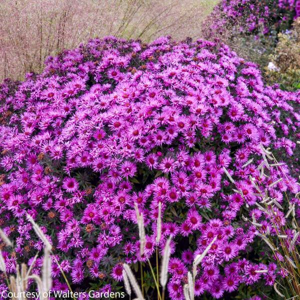 Soft, rosy-pink blooms in perfect clusters make Pink Crush a standout in the late-season garden. This New England Aster features masses of daisy-like flowers with golden centers that brighten up garden beds from August through October. Compact and upright, it keeps a tidy shape without flopping—making it both beautiful and easy to manage.